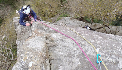 We moved on to the Merlin Buttress and Tanya top-roped Oberon (S) and Catrin top-roped Y Broga (HVS 5a).