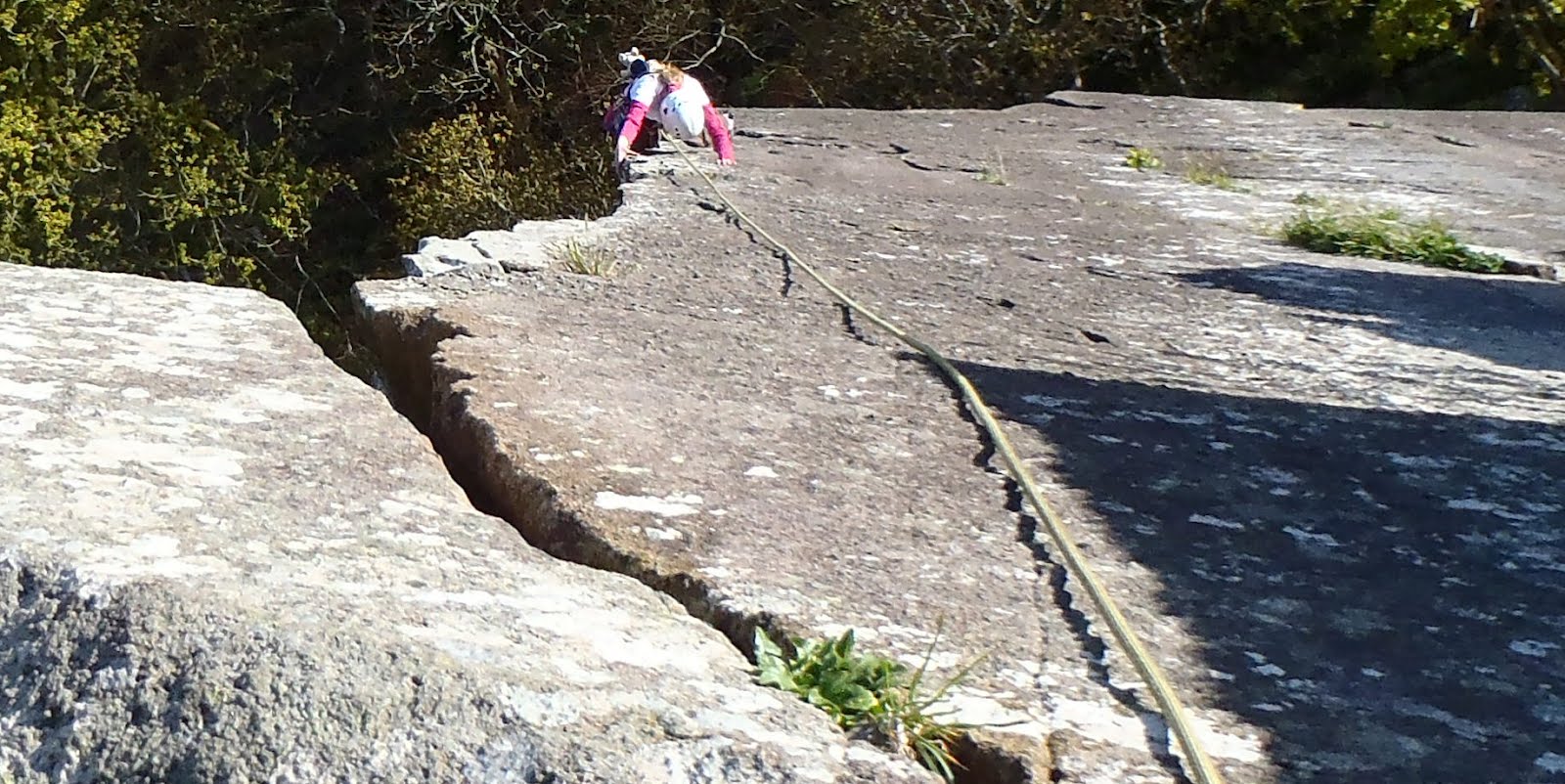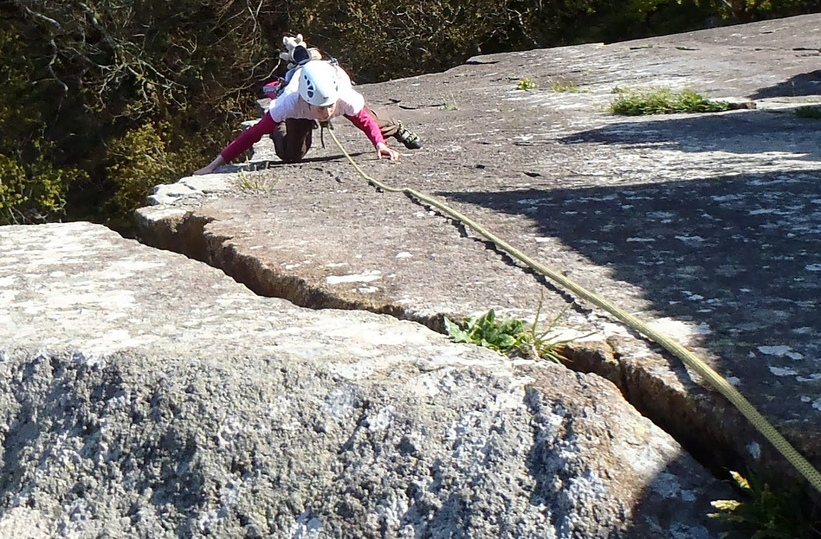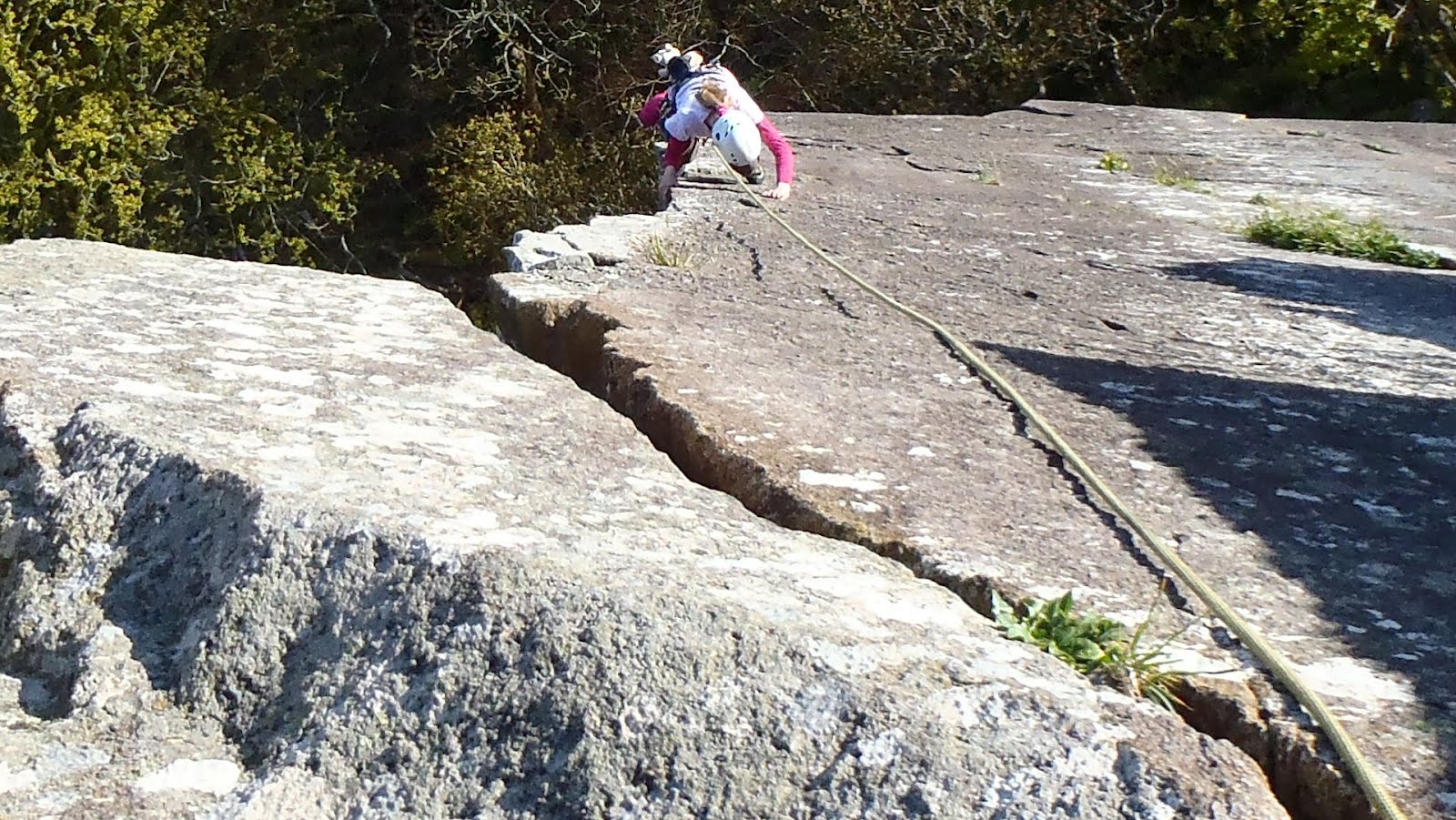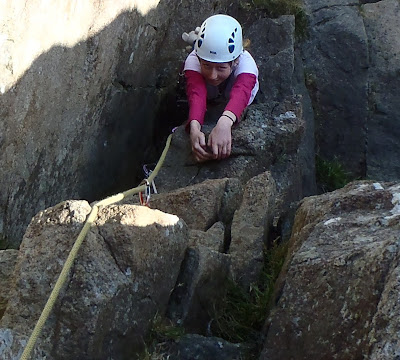 I lowered Catrin down Silly Arete (E3 5c***) so she could enjoy careful 5c slab climbing. As usual she made light work of it and was soon back at the top.