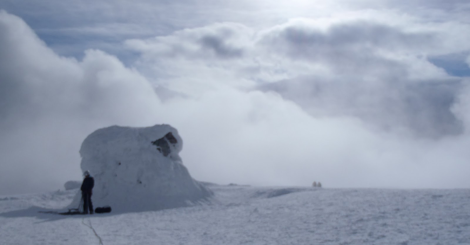 A quiet summit - of course we had to climb ontop on the shelter as well to complete our route :) |