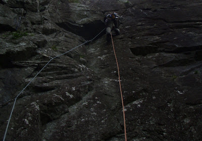 A couple of Fridays ago I teamed up with David Bukett and went on a mini road trip away from Scotland down to North Wales. We got there and found it drizzling, great! On the Saturday due to the rain we started at Tremadog. After a couple of hours it stopped so the climbing started. We were trying to complete David's MIA registration climb list - so we set off on a VS fest, how many could we do in a week? We started with 'One Step in the Clouds' VS 4c (above).