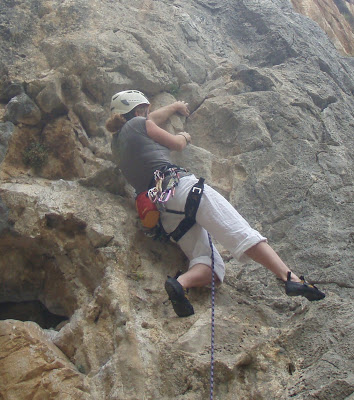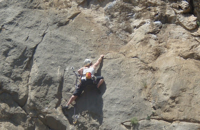 I'm still not happy to fall off (need to sort thet out!) - so doing all I can to hold on. Lena sorts out these 6c moves with good footwork and crimps on tiny holds.