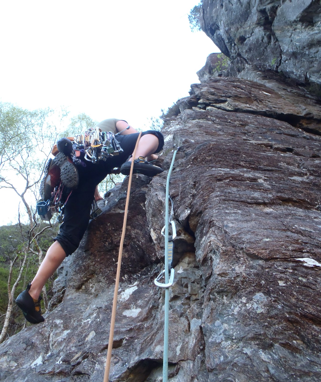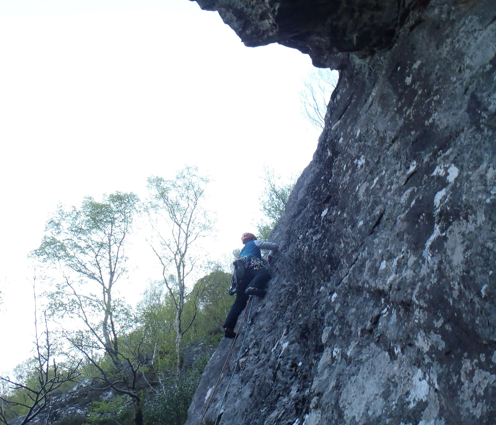Glen Nevis was busy on the 1st, but in the evening we found nobody on Phantom Slab, which gives excellent well protected 5a climbing.