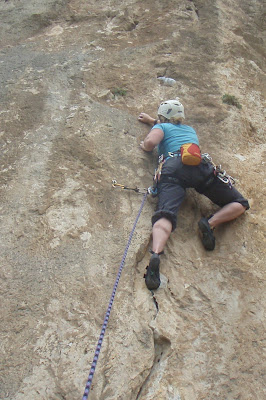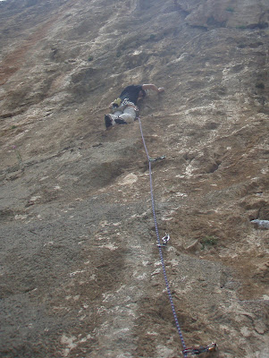 For this climb a good reach is pretty much essential! So what's best - Sport or Trad - Hmmm, well as long as it's not in the rain - it's all good. Let's find somewhere dry in North Wales now... Not Easy..