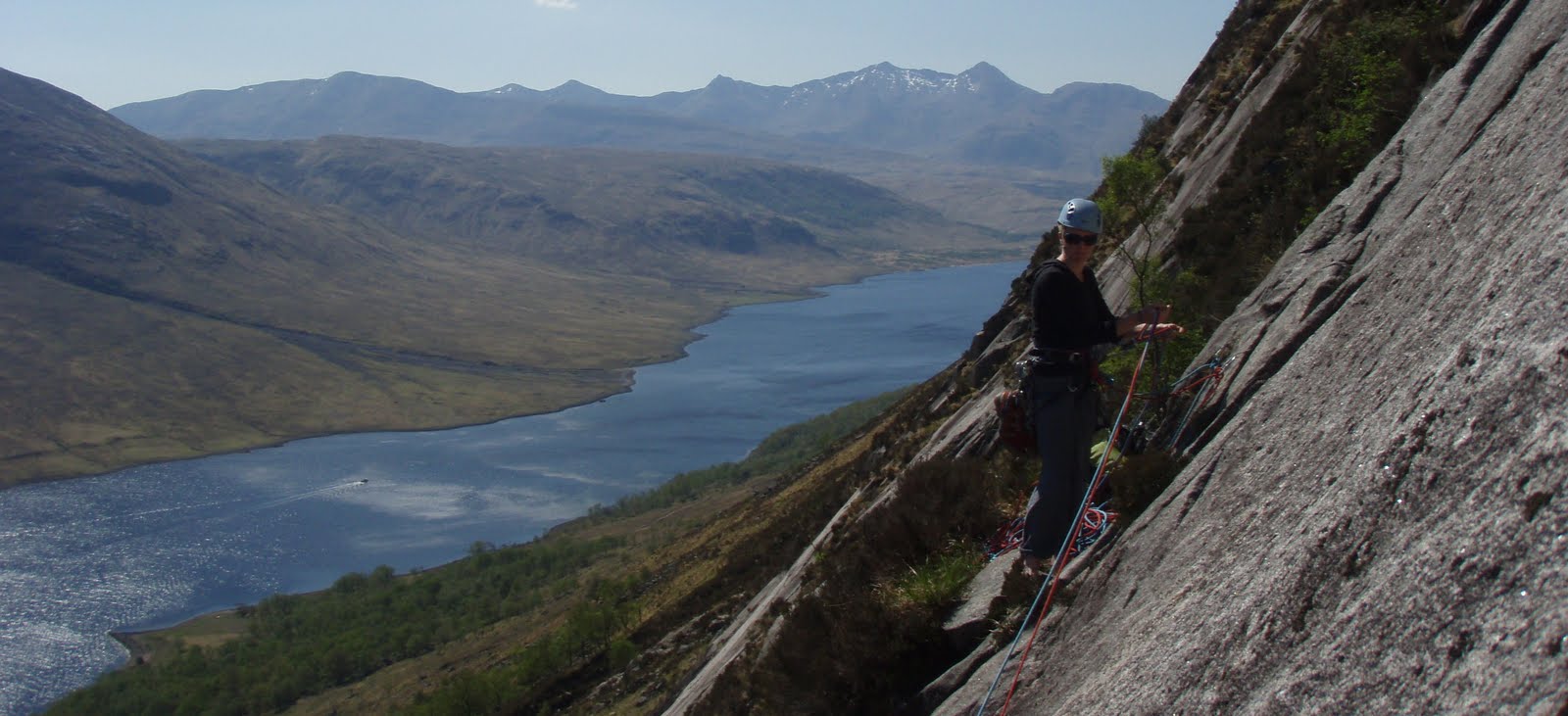 Hannah belayed at the end of her pitch 1 (5a)I teamed up with Hannah Evans to go to Etive Slabs and do 'Swastika' E2 5a,4b,4c,5a,4c,5a,5c,6a****. Hannah took up pitch 1.