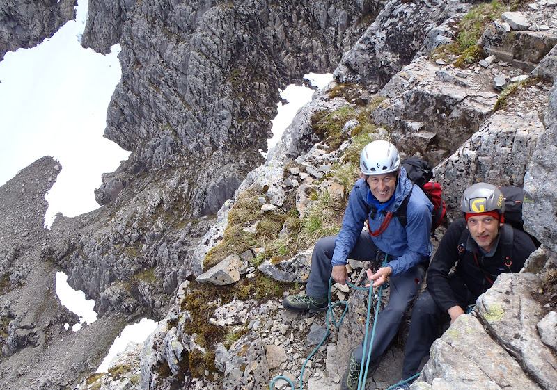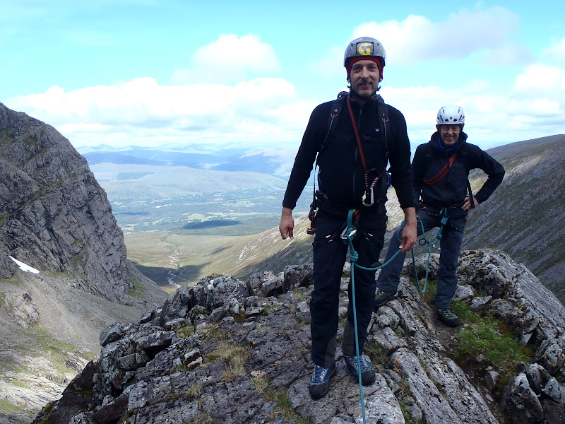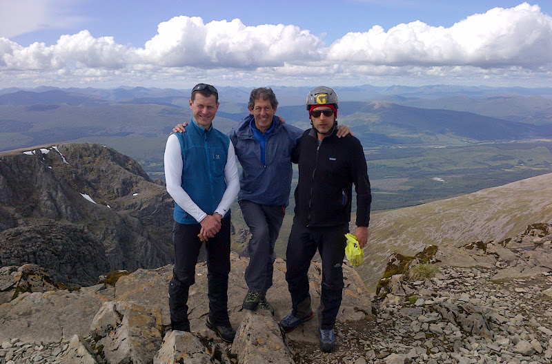 At the top of the mountain we celebrated with photos, and Dan has completed his first outdoor climb, and at last John had done Tower Ridge. John has an impressive Alpine and International climbing logbook, but had yet to tick some Scottish classics. We all made it back to Fort William in time for a good meal. Hopefully they'll be back to enjoy the classic rock that Scotland has to offer.