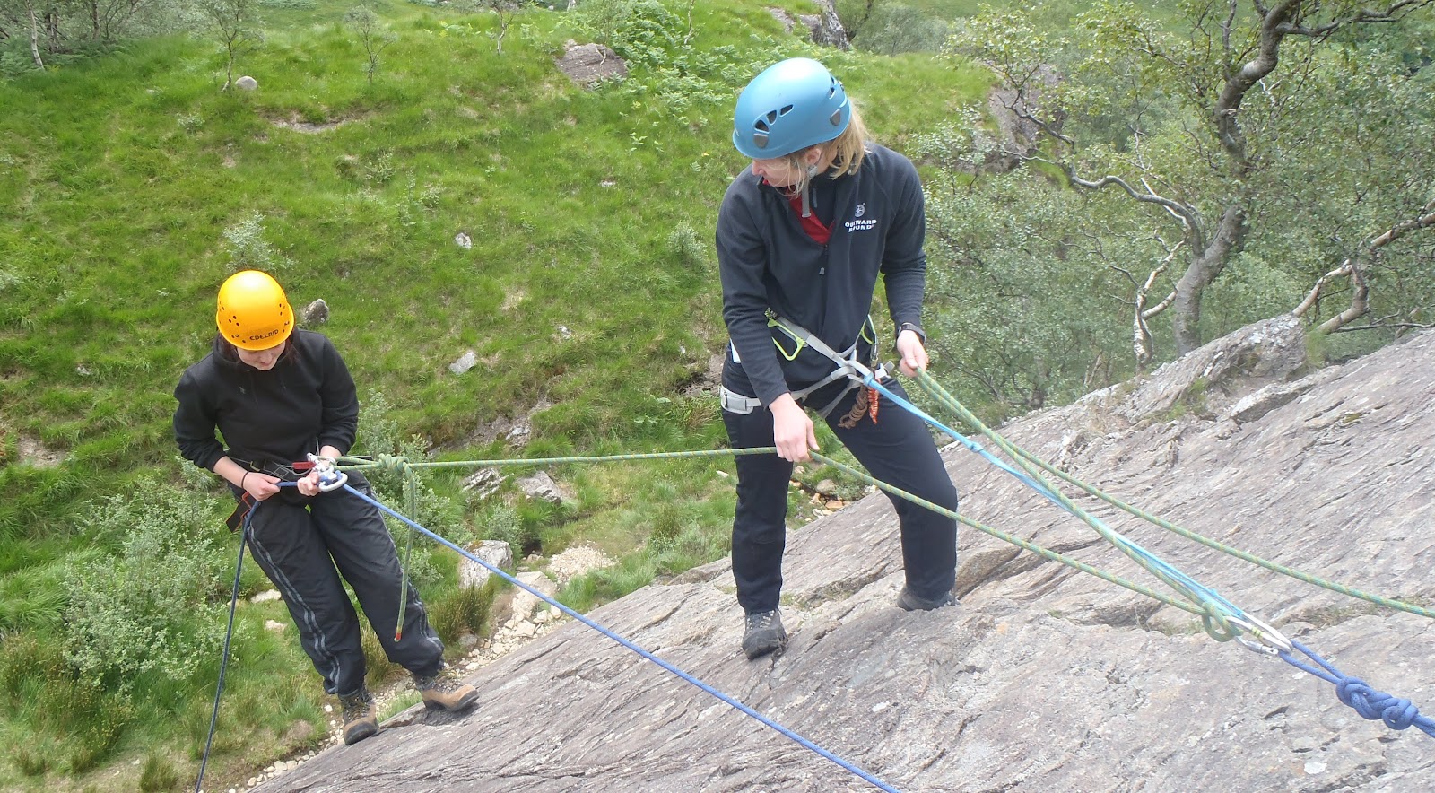 | Freda running an abseil session for Outward Bound, at SW in Glen Nevis today |