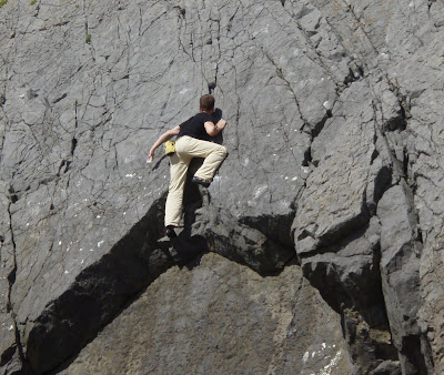 Finally a day off.. I went to 3 Cliffs Bay to chill a little, but made the mistake of taking my rock shoes! So after warming up on Perseverance, I found myself on Savenger (VS 4c), perfect limestone climbing...