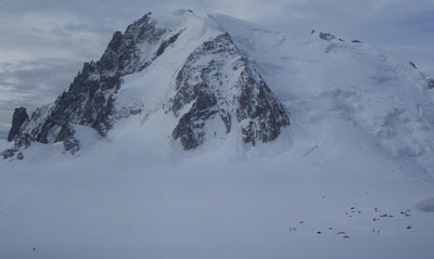 Vallee Blanche with the normal 'campsite' seen on the right hand side. Our objective just left of centre in the photo - the 'Left Edge'.