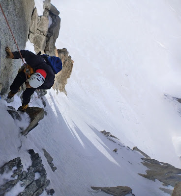 After a while the weather started to close in and the clouds were lowering, we made the difficult decision to ab off before we lost all vis on the Tacul. That's me above.