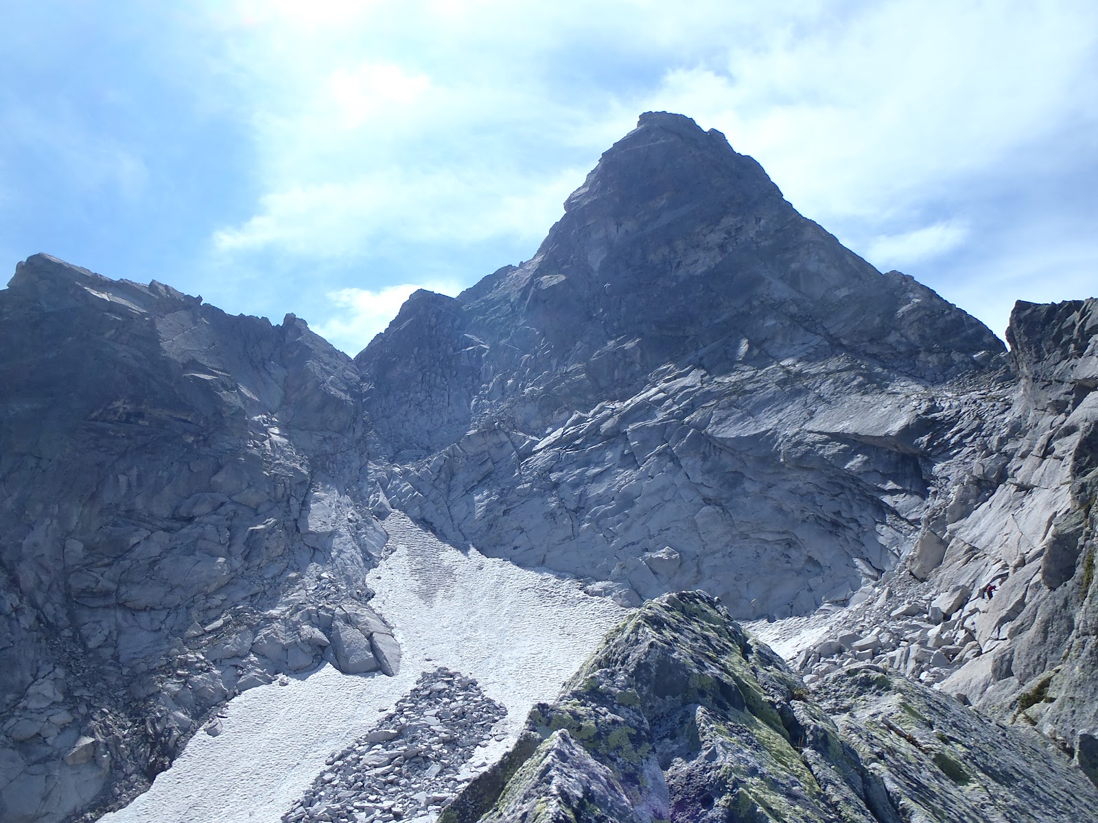 The end of the Meuli Route, with the North-West Ridge continuation to the top of Punta da l'Albigna |