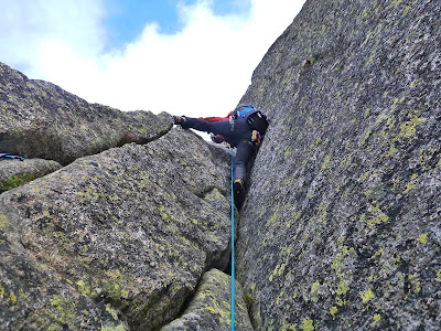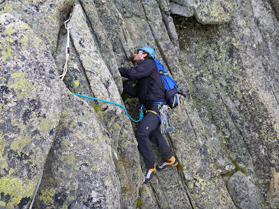 Matt, Lena and I headed out for the Minettes Ridge from the Plan in Chamonix. Lena led us up the direct start heading for 'the gap', crossing with the Normal Route. Here in the photo Matt seems to be having a rest from climbing for the photo.