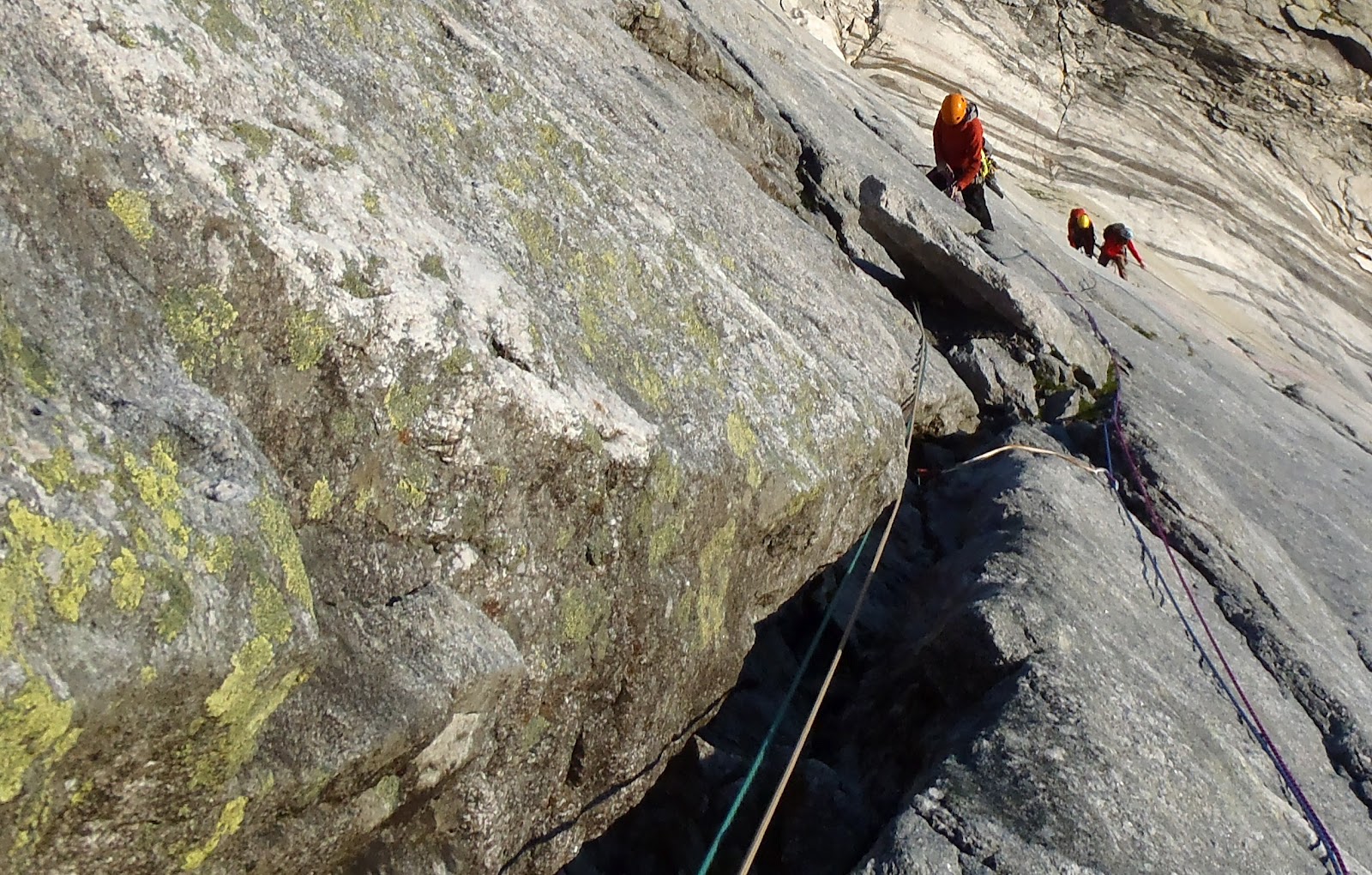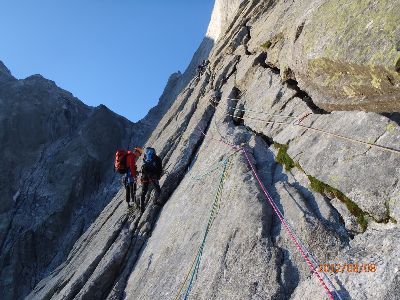Matt had to second and push through the climbing (and sometimes falling) crowds on the pitch. By now, 2 Italian guides had overtaken us, so we started moving together and made up another 2 places, by overtaking pitching teams.