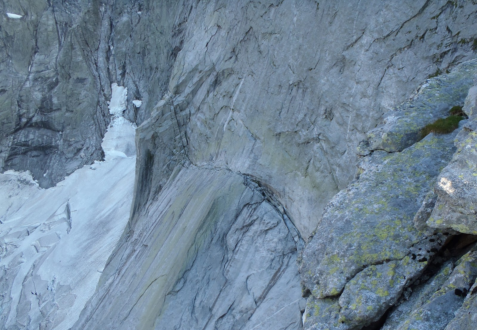 The upper section of the Cassin Route on the NE face of Piz Badile |