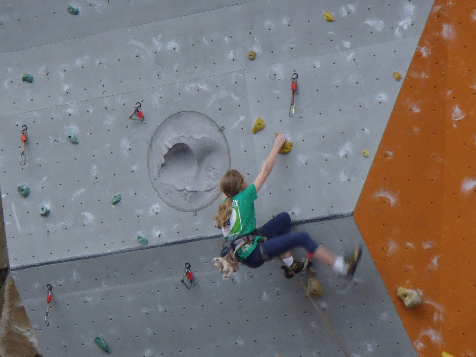 2012 BMC Open Youth Event. There were 2 qualifying rounds and a final. On route 1, Catrin topped out, putting her in a good position ready for route 2.