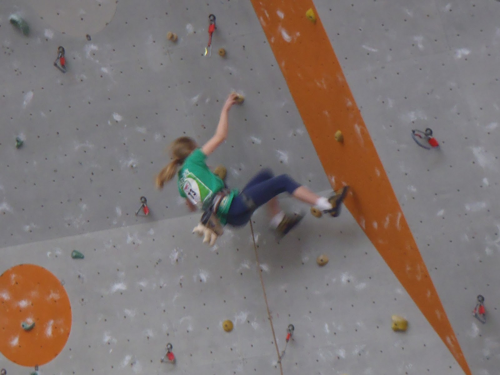 Catrin did incredibly well on Route 2, but missed out on the top 6 positions, so missed out on the Final. In her first competition, and first visit to Ratho, Catrin was up against some more seasoned, and older competitors (with longer reach!), but her good final position has encouraged her to increae her efforts for the British Leading Championships in October - watch this space!