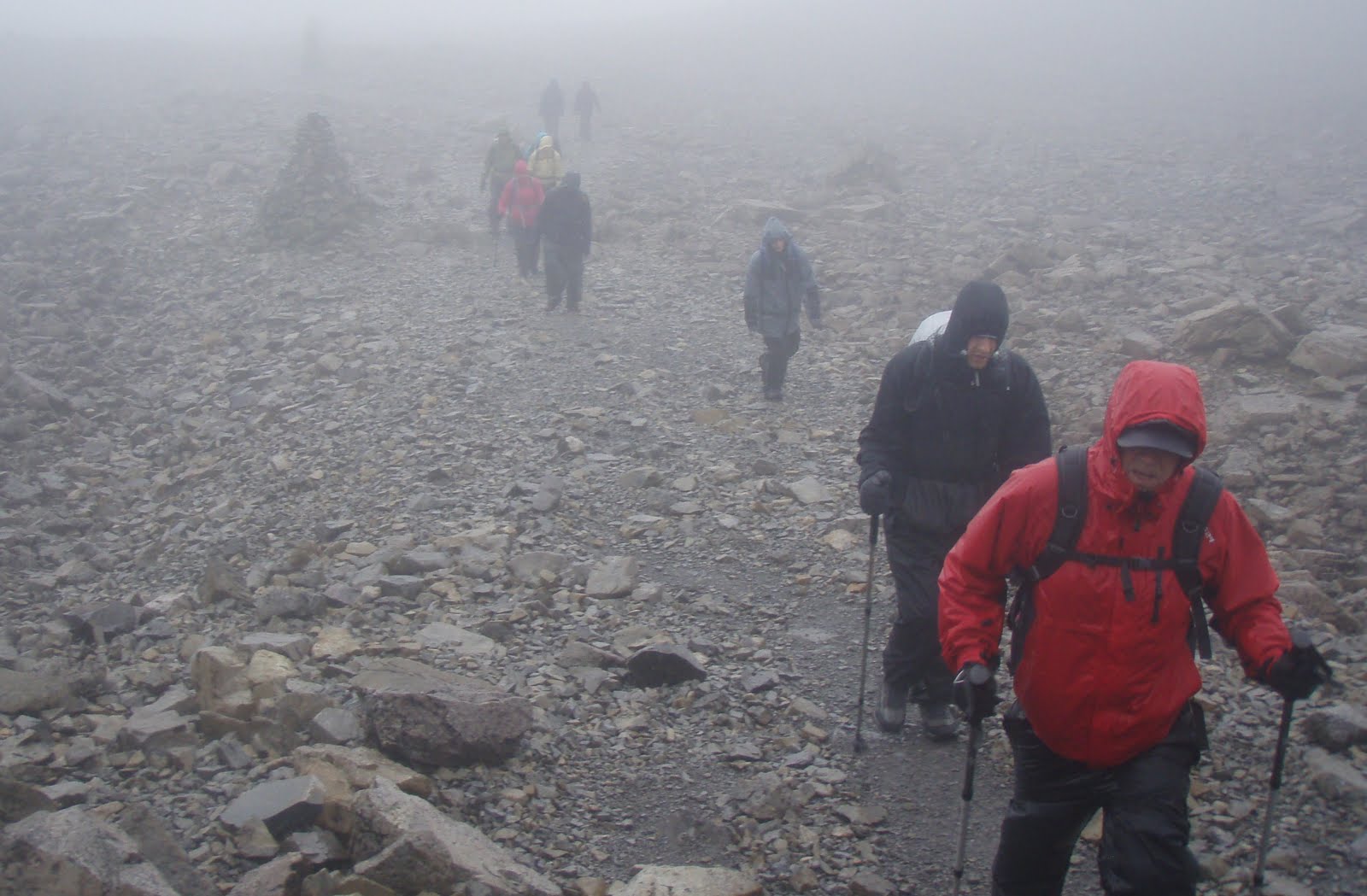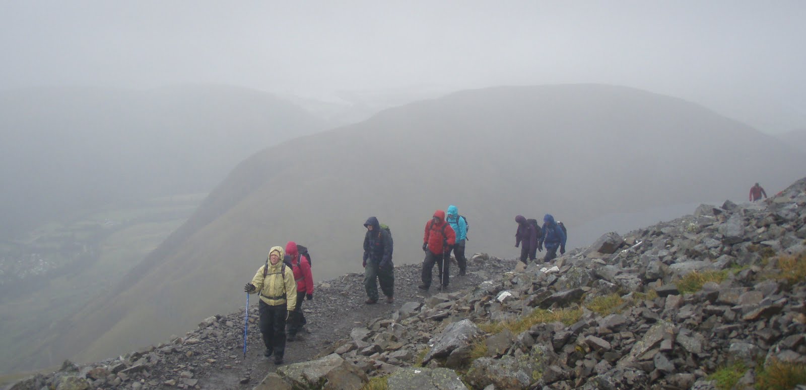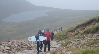 Today I was working with the Cancer Research UK team at the end of their 3 Peaks Challenge. They had difficult weather on Snowdon (the train wasn't running and the cafe was closed), they had attrocious weather in England, and then today - it got worse! The weather forecast was for perhaps gusts of up to 80 mph and prolonged driving rain.