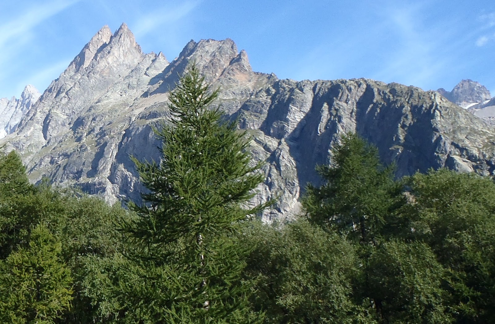 Alison Culshaw and I headed over to Italy and drove up the Val Ferret to walk into the Ref. Dalmazzi. The plan was to walk in, do a climb in the afternoon, stay in the hut, then do 'Kermesse Folk' on the Monts Rouges de Triolet, with an early start the next day... So that was plan A! How often do you get to do plan A? When stuff happens, you get to plan B, C or Z! So what could go wrong...