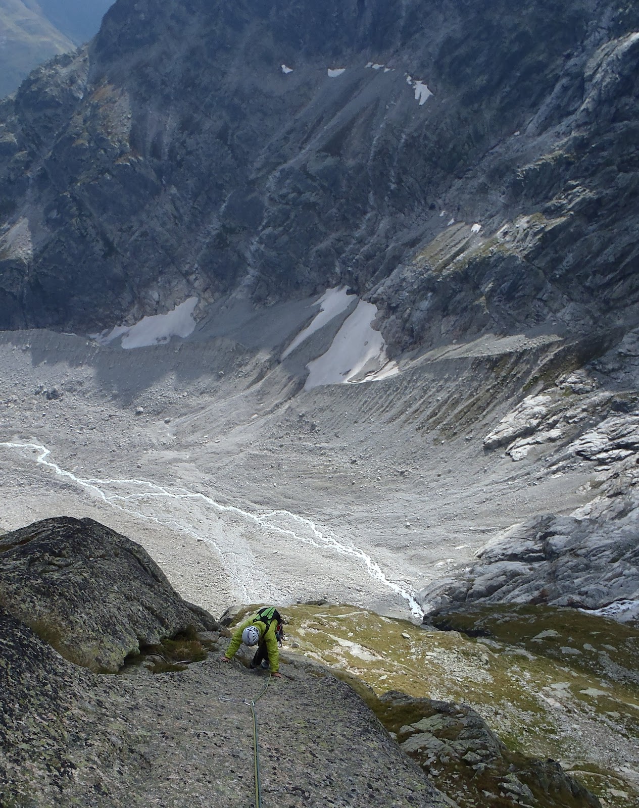 When we got to the hut, we found the hut had closed for the end of the season, the day before! The guardian was busy putting the rubbish together for the helicopter collection, and closing up. We didn't bring a stove, evening meals, breakfast, or anything for a bivvi. On the up side we would save the money to pay for the Hut and meals... We decided to go for our afternoon climb on Cris-tal, and later decide whether to walk back to the car in the evening.