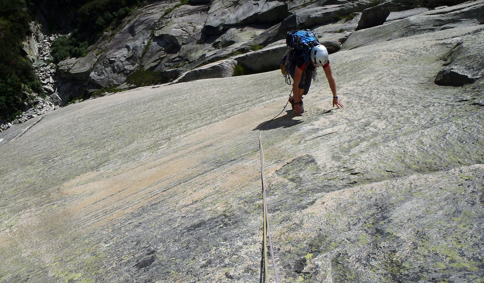 With a little trust in the friction on the rock the route was easy - and a bit like a steep walk! After a couple of hours we were off and planning our next friction slab climb - when it started to rain!
