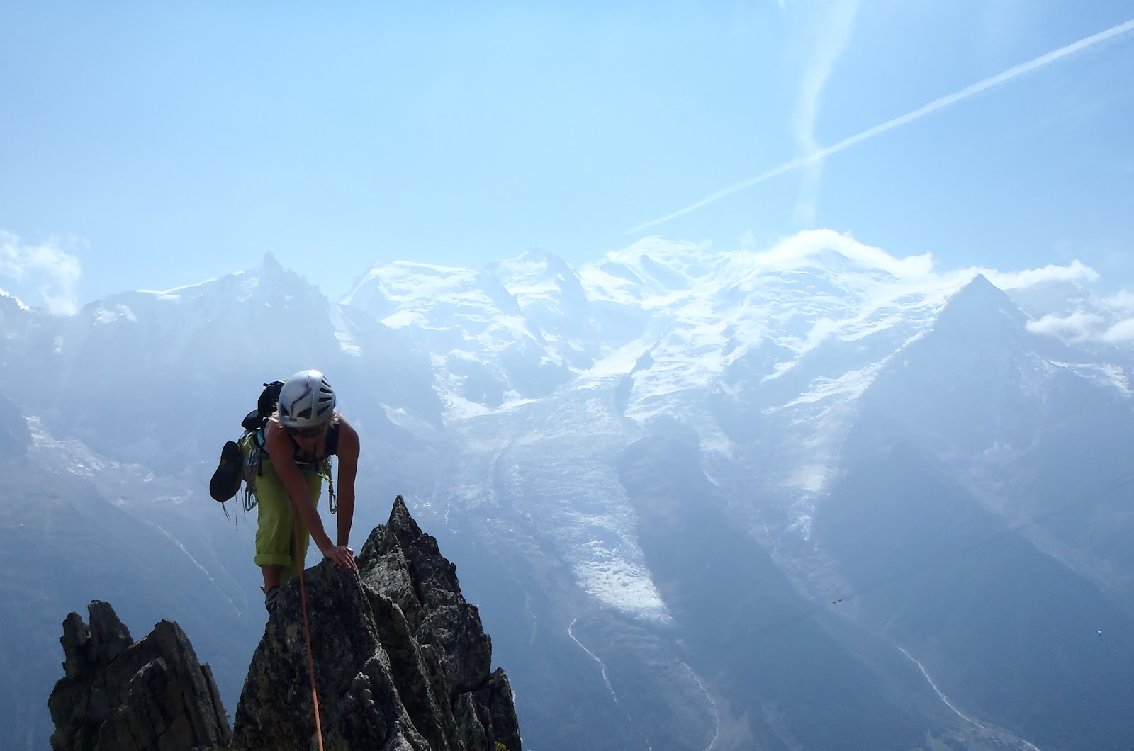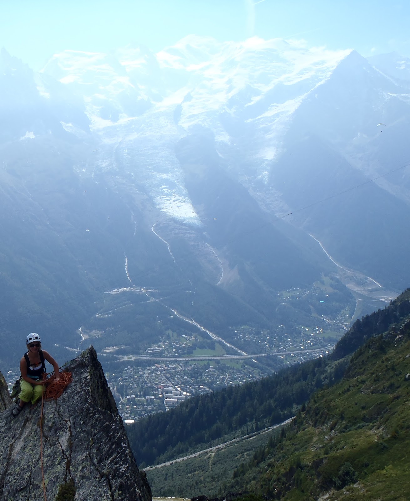 Alison Culshaw in Chamonix for a couple of days of climbing before the weather would fall apart on Wednesday. On Sunday for an easy low stress day we wanted to make use of the uplift at Le Brevent, but found when we got there that the upper lift was closed for the end of the season, so we could only get to the midstation - Planplaz. We decided not to walk up to 'Crakoukass', but do the 6 pitches of 'La Tartiflette' instead.