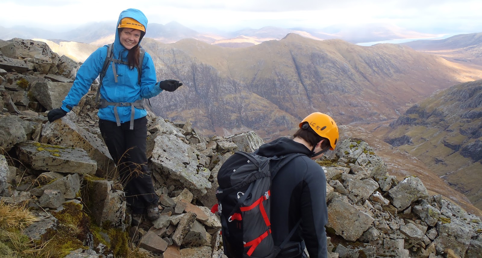 Linsay (carefully hiding her injury) and Andrew on their way down off Stob Coire nan Lochan |