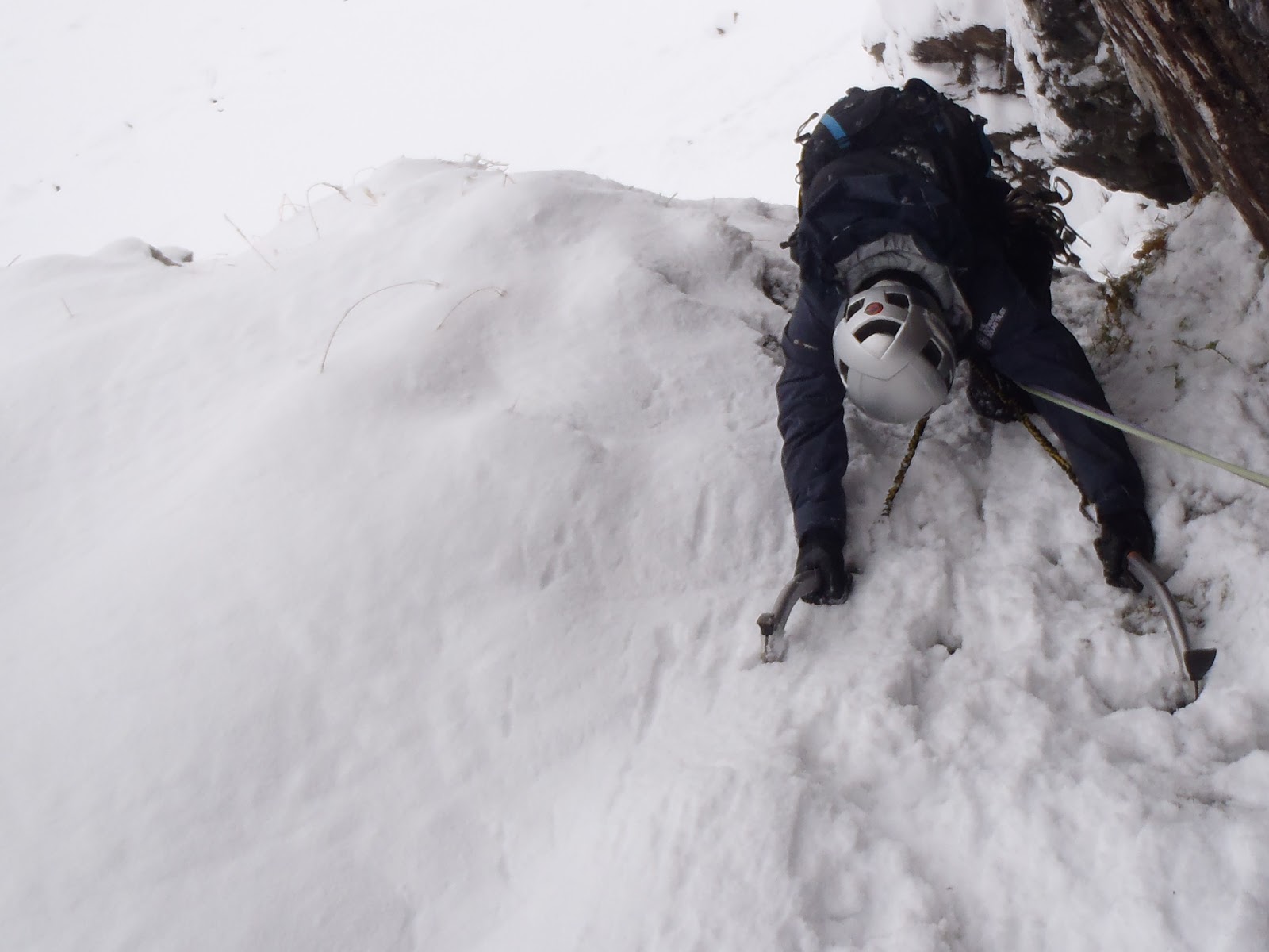 On the way down. We managed to find a place where we could do a mini grass slide in our waterproofs. This is the summer equivalent of winter snow glissading :)