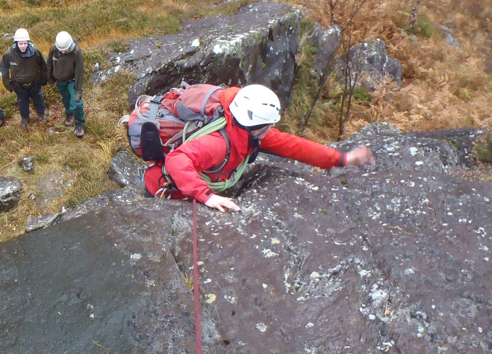 Lena climbing wet Glen Nevis rock on Tuesday |