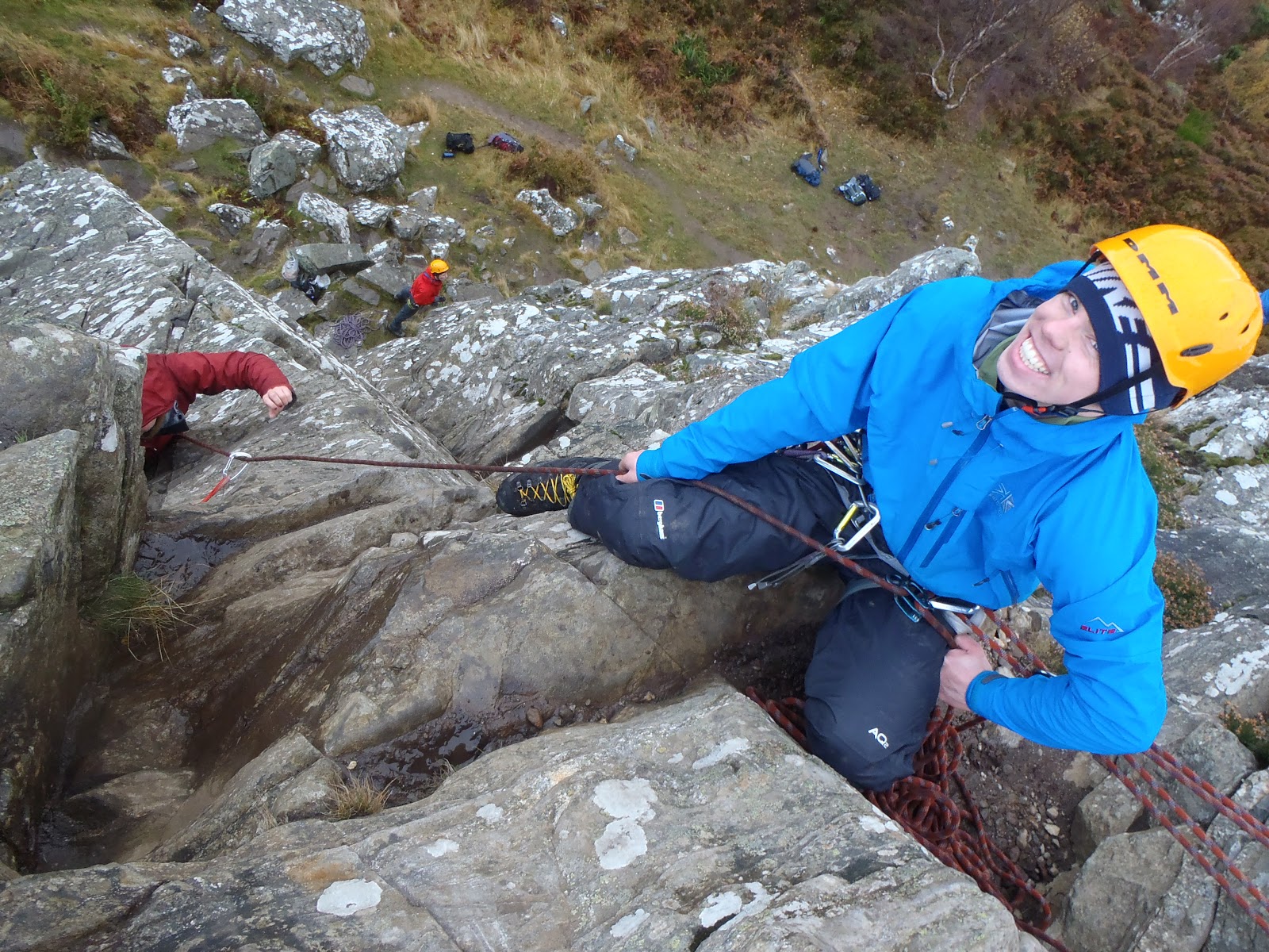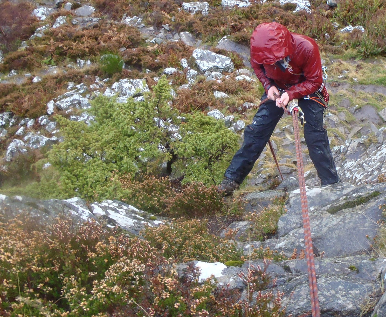 Yesterday in Glen Nevis we didn't get too wet - Jen abseiling at the end of the day |