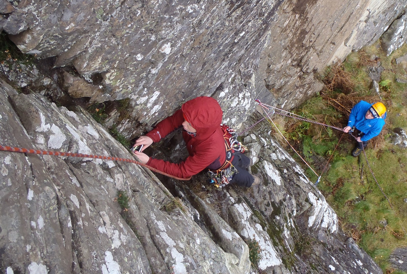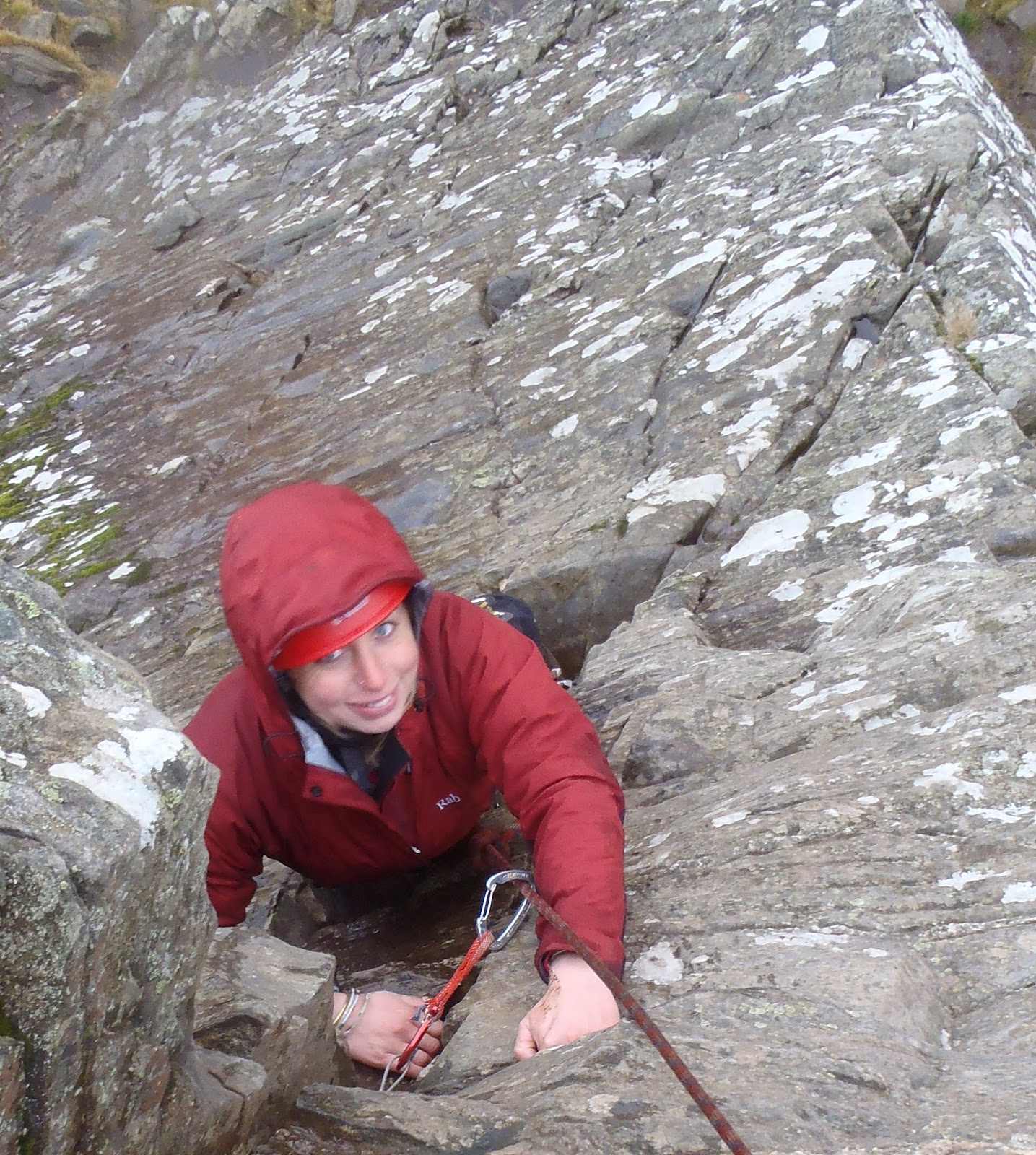 Despite the conditions, cold belays and colder hands, Jen and Chris stayed happy and focused. Hope you find a drying room tonight, and find a dry crag to practice on before next spring :)