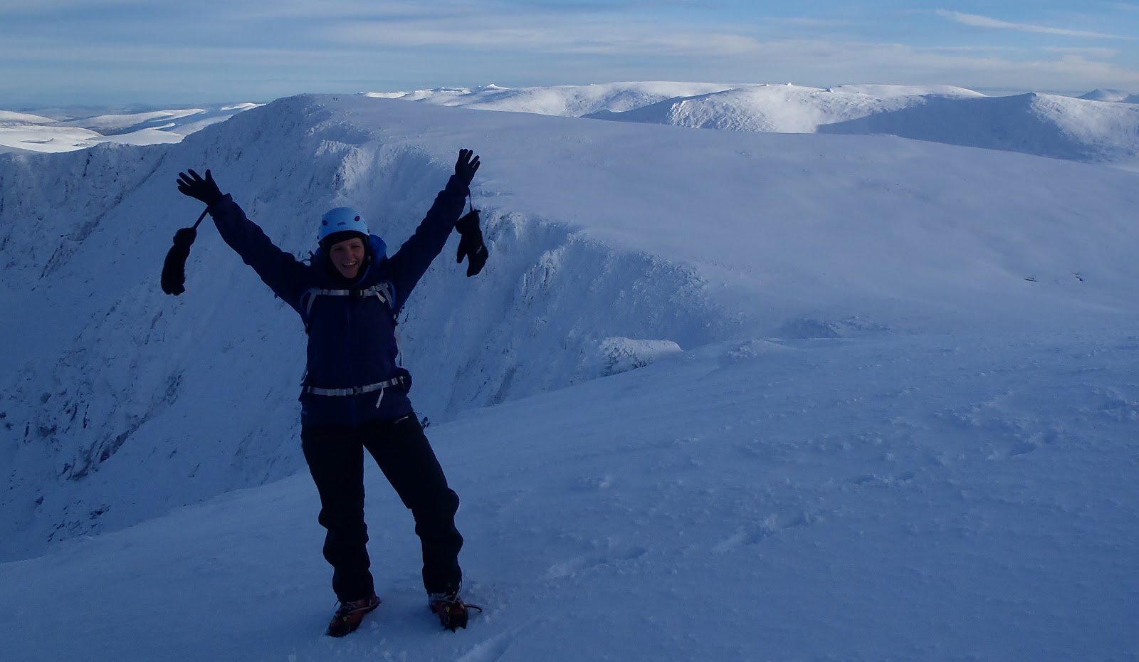 | Angela - with Stob Coire an t-Sneachda behind her head |
