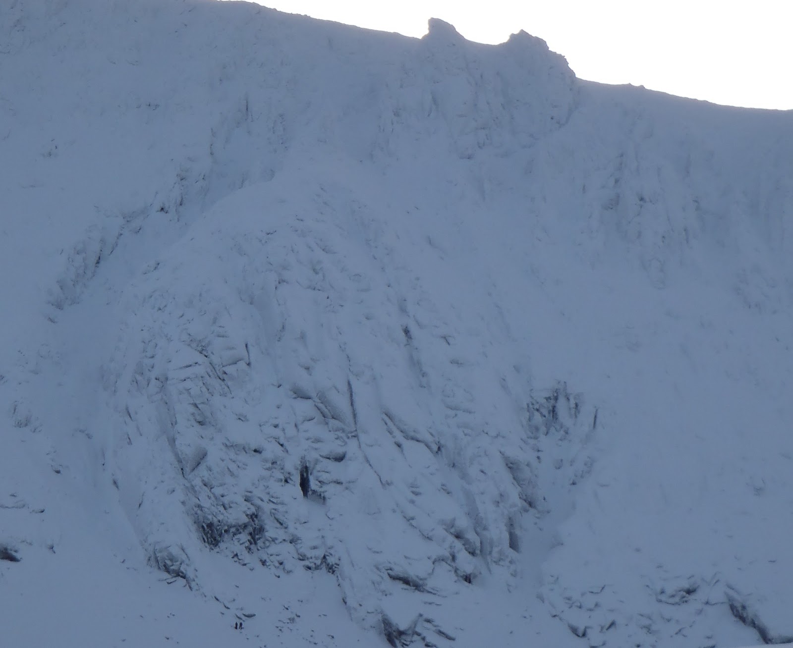 | A climbing team looking into Coire an t-Sneachda choosing where to go. They followed the crowds to the Mess of Pottage. |