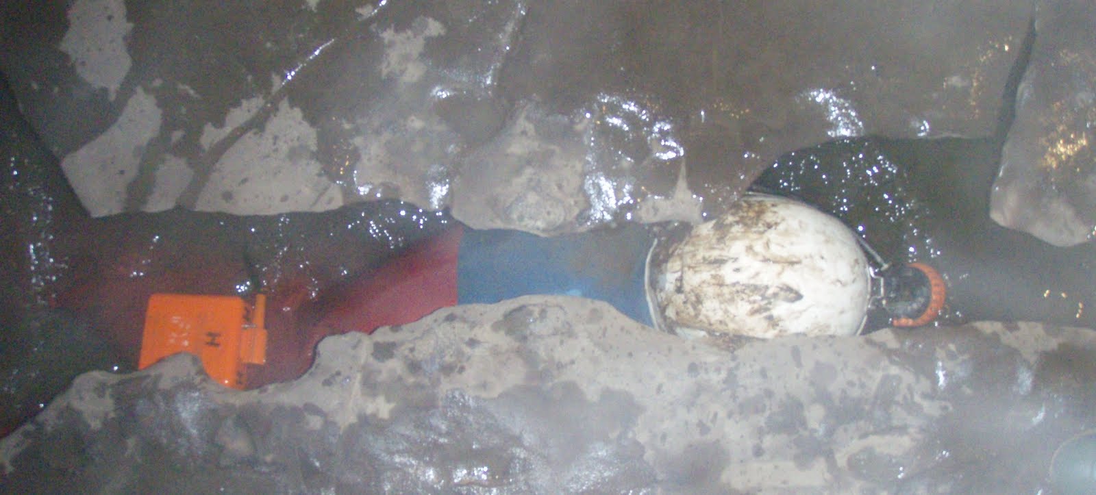 There was an ice fall forming at the entrance, but we had to push past it into Ogof Clogwyn today and go for a cave adventure searching for the Taliban... This always involves diving through small spaces - today it was FREEZING !!