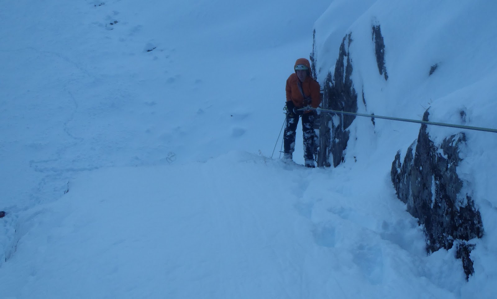 The snow was so deep that there were only a few tracks in/out of the coire. There were a couple of other climbing teams out on Twisting Gully, and Twisting Grooves.