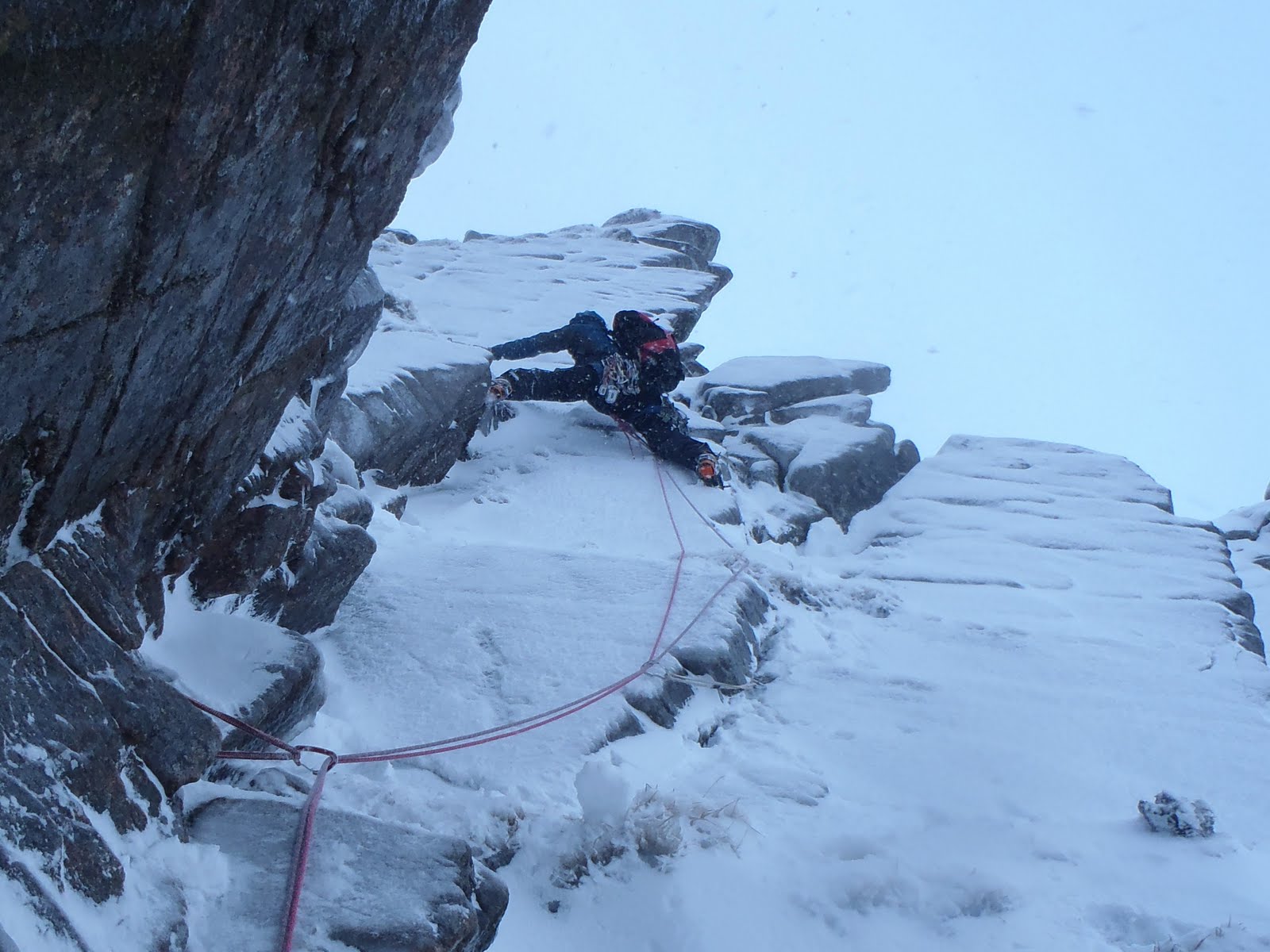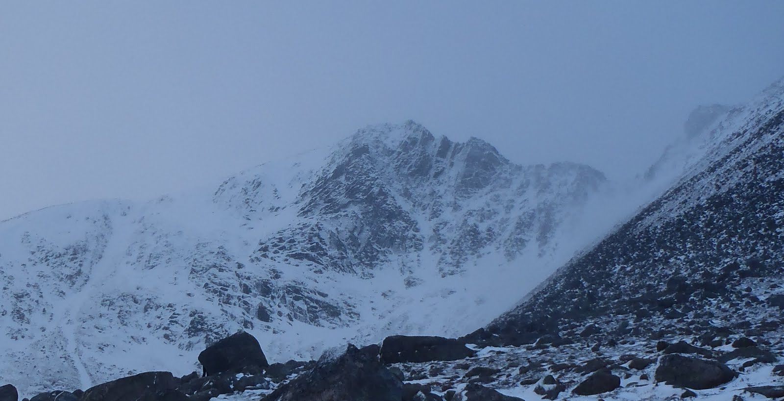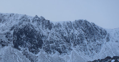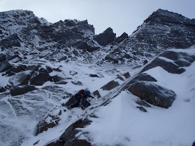 We decided to join the weekend masses today and brave the wind in Coire an t-Sneachda. The weather turned out to be okay, and visibility was generally very good. We decided to go to the hopefully sheltered corner of the coire - Fiacaill Buttress.