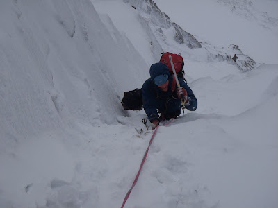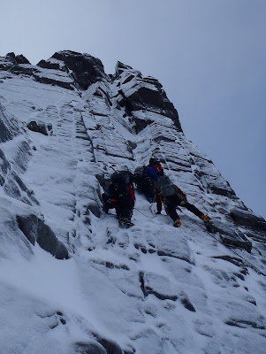 Some of the crouds on The Seam today. There were at least 4 teams on the route at the same point. One person dropped an axe - missed Matt by 5 metres and landed 10m from me - we managed to get the axe back to the team.
